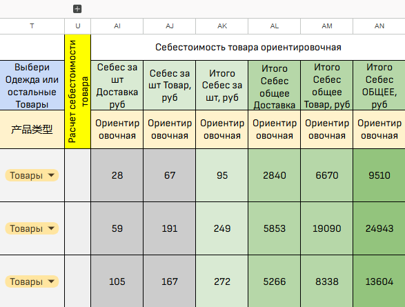 После этого таблица автоматически рассчитает ориентировочную себестоимость товара и доставки.