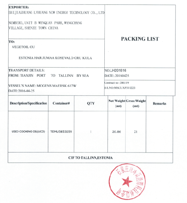 (Packing List),содержащий вес, объем, количество мести упаковку груза.