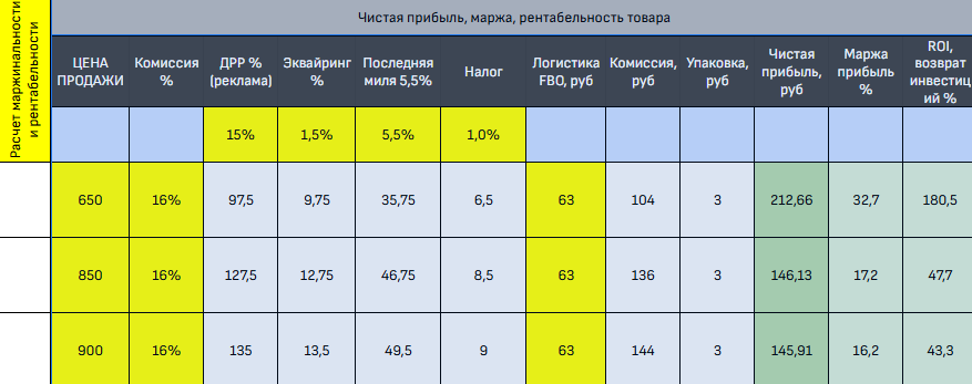 Настройте под себя показатели и узнайте Чистую прибыль, маржинальность и рентабельность товара