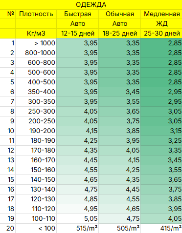 Рекомендуем Вам для одежды закладывать около 4$ за кг, а для остальных товаров около 3$ за кг. Так меньше вероятности, что вы ошибетесь при расчете себестоимости товара.